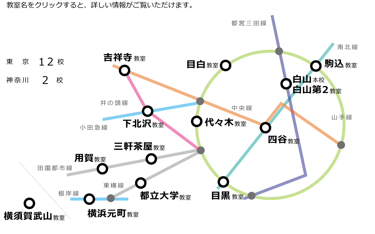 | 横浜元町教室 | 〒231-0868 神奈川県横浜市中区石川町2-64プラザセレス石川 Ⅰ-305 |
